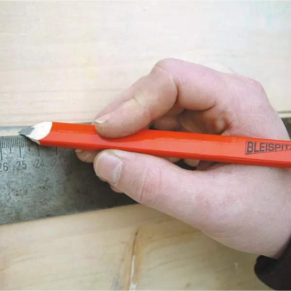 Tesarska olovka HB, 240mm je idealna za obeležavanje drva, kartona, papira i betona. Izrađena od visokokvalitetnog drveta lipe, pruža optimalnu kombinaciju stabilnosti i fleksibilnosti, što omogućava precizan rad u različitim uslovima. Grafit HB obezbeđuje jasne i vidljive linije, dok je olovka otporna na vremenske uslove, što je čini pogodnom za spoljne i unutrašnje radove. Visoka vidljivost crteža čini je savršenim alatom za tesarske i druge građevinske poslove.