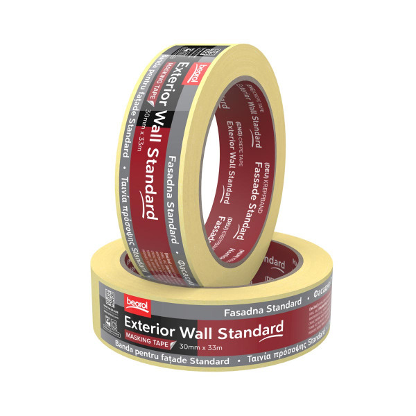 Krep traka Fasadna Standard 30mm x 33m je namenjena za zaštitu spoljašnjih površina prilikom izvođenja molerskih radova. Traku karakteriše lepak od prirodnog kaučuka. Namenjena je profesionalnim i poluprofesionalnim molerima kao i hobistima. Nakon lepljenja na površinu traka pruža najbolje performanse do 48h i ostavlja površinu čistom nakon uklanjanja. Svojim visokokvalitetnim lepkom i papirom omogućava upotrebu u unutrašnjem i spoljašnjem prostoru što je čini idealnom višenamenskom trakom. Otporna je na visoke temperaturne i atmosferske uticaje i prilikom odlepljivanja ne ostavlja tragove lepka niti se kida. Preporuka je da se koristi na površinama kao što su: zid, gips-karton, drvo, PVC, metal. Boja Žuta.