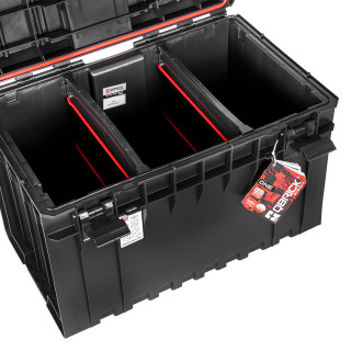 Kutija Qbrick System ONE 450 Vario je dimenzija 585 x 385 x 401 mm i zapremine 52 litara, što omogućuje skladištenje velike količine ručnog alata, raznog pribora, čak i električne ili pneumatske bušilice. Priloženi razdelnici omogućavaju laku i brzu organizaciju prostora unutar kutije prema trenutnim potrebama.