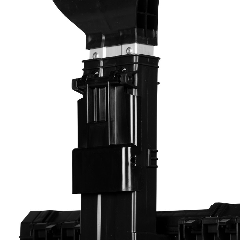 Opremljena točkićima i teleskopskom aluminijumskom ručkom, omogućava lak transport kutije sa alatom kroz neravne površine, hodnike, skladišta i druge prostore. Fleksibilna zaptivka na poklopcu kutije sprečava prodor vlage i prašine, čuvajući sadržaj od spoljnog uticaja.