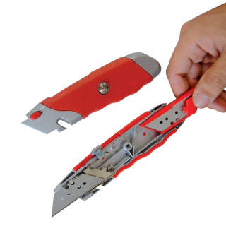 Ovaj skalpel je idealan za profesionalce i hobiste koji se bave poslovima gde je potrebna velika preciznost, izdržljivost i sigurnost. Koristi se za sečenje širokog spektra materijala, uključujući drvo, plastiku, tepihe, gumu, itison, vinil, konopce, staklo, gipsane ploče, karton, veštačku travu i razne vrste hartije. Unutar skalpela se nalazi šaržer sa 5 komada lako zamenljivih nelomljivih SK5 čeličnih sečiva, čineći alat spremnim za intenzivan rad u zahtevnim uslovima.